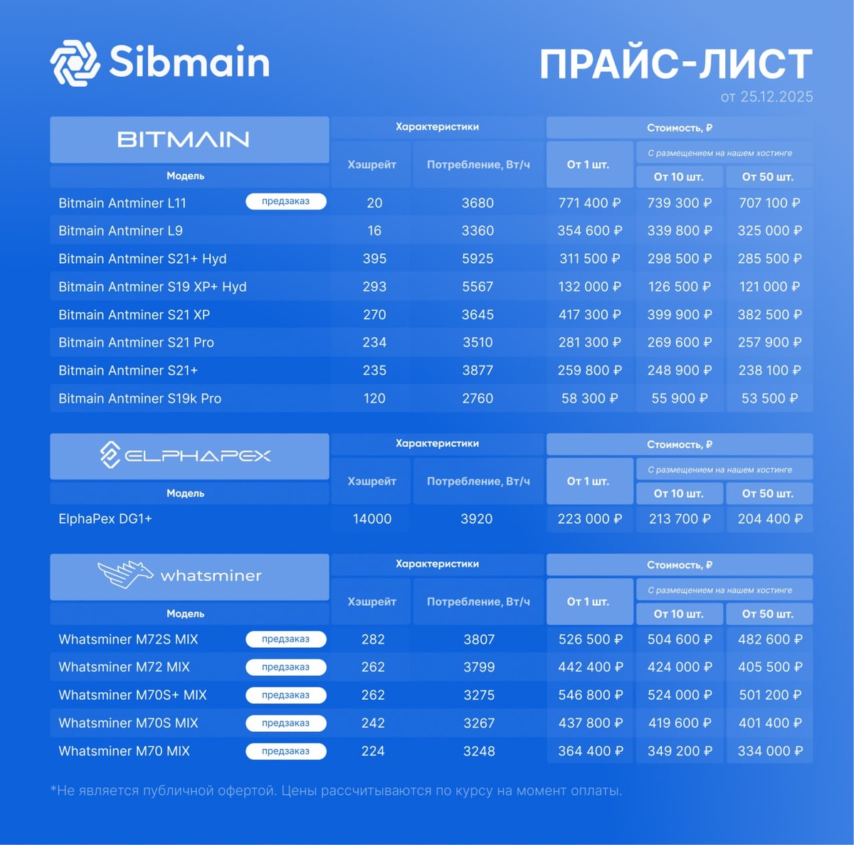 12. Sibmain комплексные решения для майнинга под ключ! - Поставки майнинг оборудования - Дата-центр в Красноярске 80 МВт - Размещение от 5,4 руб/кВтч ⌨️ Нужна консультация или помощь в подборе оборудования? Звоните: +7(937)544-44-43 📍 г. Москва Калужская площадь д.1 к.1 💬 WhatsApp 💬 @Sibmain_salesbot 🌐 sibmain.ru