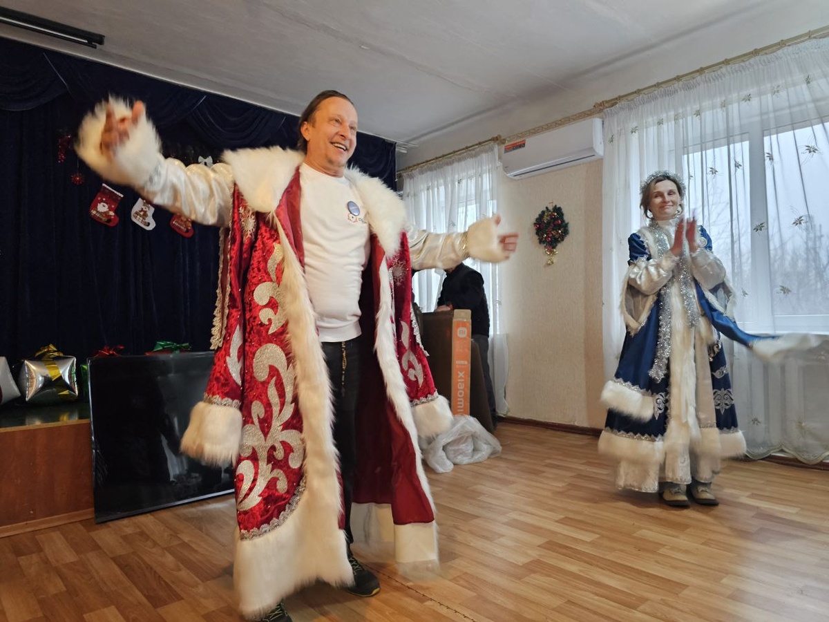 Известный актер Иван Охлобыстин накануне Нового года приехал на Донбасс, чтобы как Дед Мороз поздравить детей на прифронтовых территориях. Иван Иванович привез целую фуру, груженую детскими подарками и вещами/инвентарем, необходимыми для пунктов размещения беженцев, школ и спортивных кружков. «Привет большой передаю Ивану Ивановичу Охлобыстину, который сейчас работает Дедом Морозом в ДНР. У него большая программа, он посетит несколько школ, интернатов. 1500 подарков он везет туда. Также в планах посещение двух пунктов временного размещения. И не первый раз мы помогаем Центру адаптивной верховой езды и конного спорта», – рассказала председатель попечительского совета Фонда гуманитарных инициатив «Орион» Ксения Шойгу. Сама она приехала в Курск, где устроили праздник для детей, которые ранее были эвакуированы с семьями из Суджанского района, который подвергся оккупации ВСУ в прошлом году. Фонд привез 1 500 подарочных наборов со сладостями и развивающими играми. «Огромное спасибо, что в та