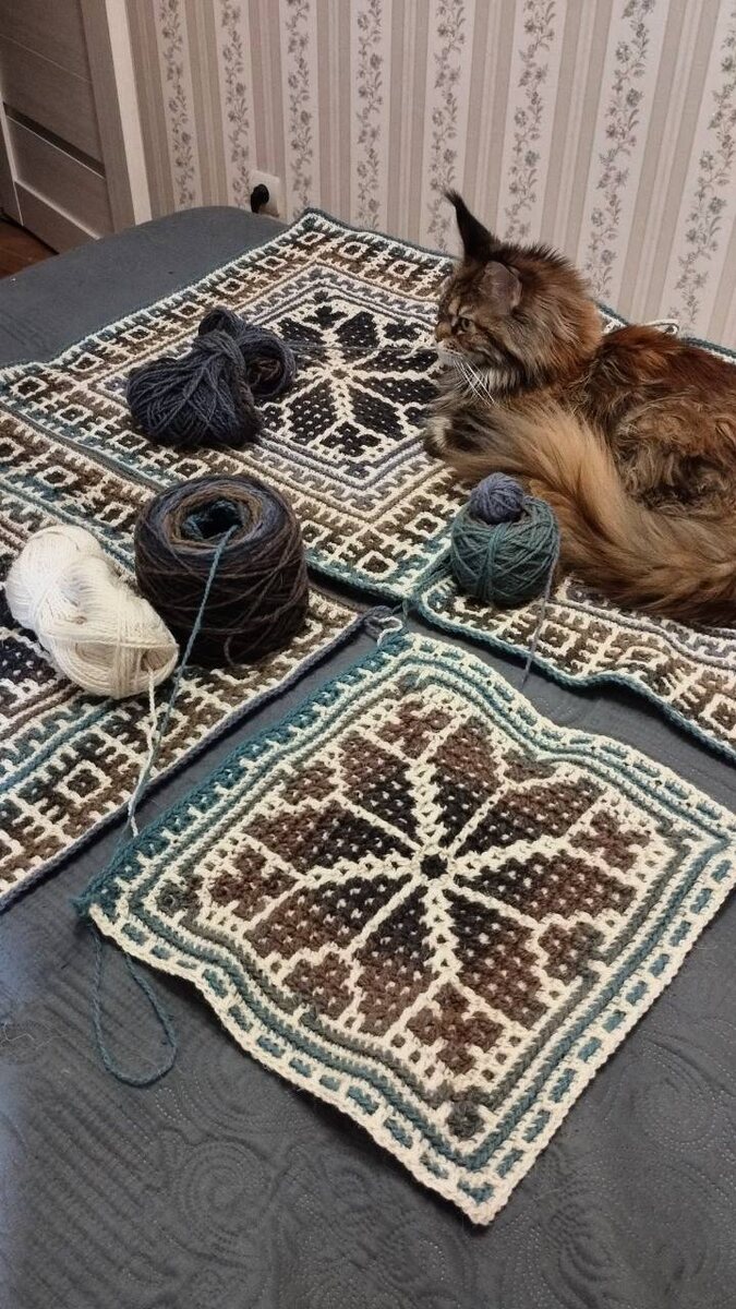 Новости наших чатов В чате «Дундага в мозаике» еще один проект в процессе — Юлия взяла за основу своего пледа мотив из проекта «10 нескучных подушек». Вам знакома вариация этого узора и по проекту «Цветочная геометрия». Будем наблюдать за волшебством переливов Дундаги😍