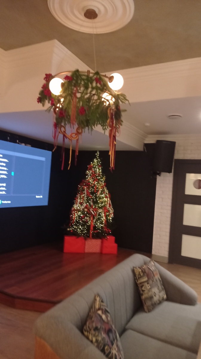 В зале уже все новогоднее, праздничное.