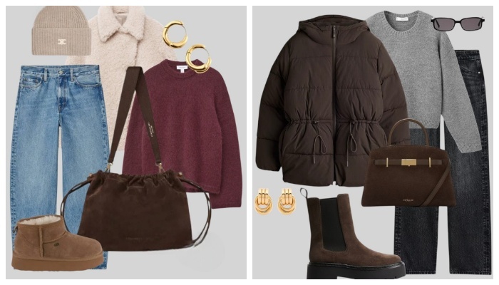 Современная мода всё чаще делает ставку на баланс между эстетикой и комфортом. Представленные сеты — наглядный пример того, как можно выглядеть элегантно, не жертвуя удобством. В этих образах сочетаются базовые силуэты, благородные оттенки и практичные детали, которые легко адаптируются к повседневной жизни. Тёплые пуховики, мягкие свитеры и прямые джинсы создают ощущение уюта. Объёмная верхняя одежда отлично сочетается с лаконичными аксессуарами — кожаными сумками, минималистичными украшениями и удобной обувью на устойчивой подошве. Это идеальные образы для прогулок, поездок и активных будней. Образы с бежевыми, молочными и шоколадными оттенками выглядят особенно дорого и универсально. Мягкие свитеры, джинсы и замшевые ботинки формируют расслабленный, но собранный образ. Такие комбинации легко вписываются в городской ритм и подойдут как для работы без строгого дресс-кода, так и для встреч в кафе. Монохромный карамельный сет выглядит дорого и утончённо. Длинное пальто с поясом подчёрк