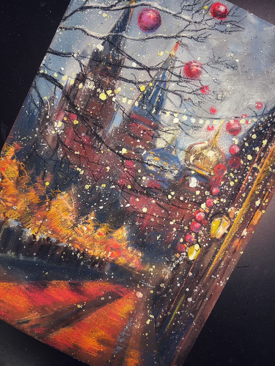 Новогоднее сияние Москвы. Тестирую новые мелки на вечернем пейзаже ❄️✨