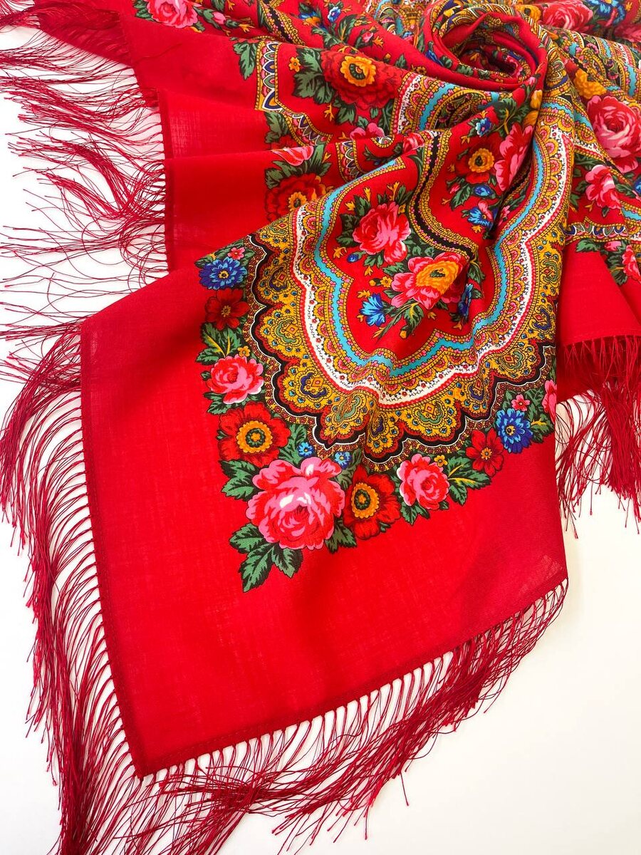 🌹 Его красный фон — насыщенный, тёплый, как бархатный мак. АНа нём — россыпь цветов: яркие розы, янтарные бутоны, синие и бирюзовые вкрапления, всё это обрамлено золотистыми завитками пейсли. Орнамент сложный, выразительный, но очень цельный — классика Павловопосадской школы в самом её ярком воплощении. И теперь у «Любавы» — шёлковая бахрома. Она делает платок ещё более изящным: легче на плечах, пластичнее в драпировке, с мягким, едва заметным блеском. Деталь вроде бы небольшая, но именно она придаёт образу ту самую лёгкость и нарядность. 🧣 Такой платок — отличный выбор для праздничных дней: встречи Нового года, вечерних выходов. Он сразу создаёт настроение и подчёркивает внутреннюю уверенность в себе. —————— Платок шерстяной с шёлковой бахромой «Любава» Арт. 1289-5 Размер: 146x146 см Художник: Белокур Наталья —————— *Все права на фотографии и видео принадлежат ОАО «Павловопосадская платочная мануфактура»