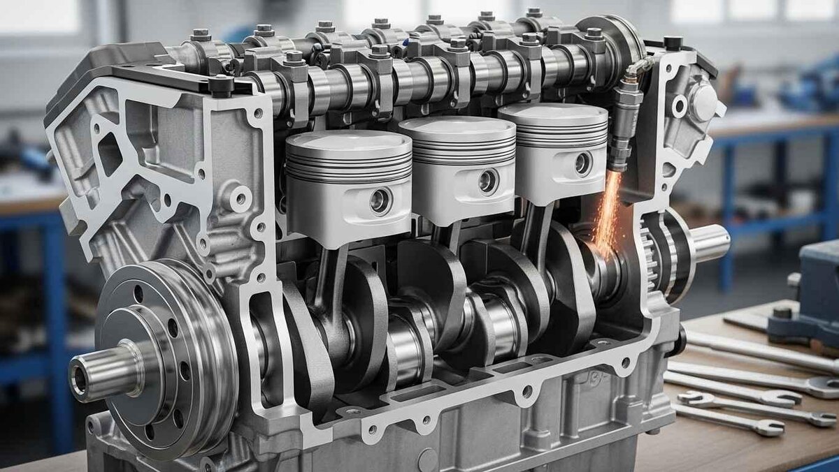 Цилиндр — основа двигателя, в нём происходит процесс сгорания топлива.