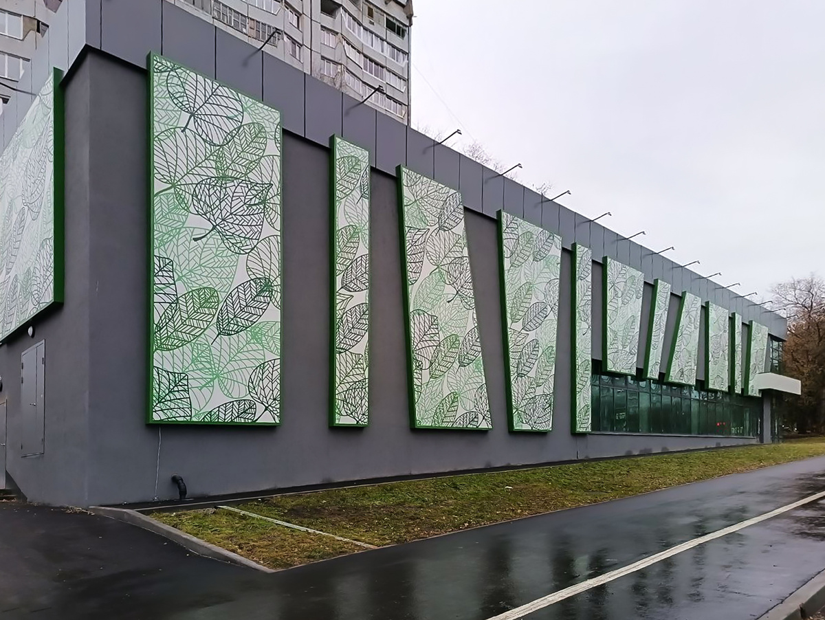 Алюминиевые и стальные композитные панели SIBALUX активно применяются на строительстве масштабных городских объектов. Но иногда наш композитный материал применяется и на строениях поменьше. Всё зависит от поставленных задач. В городе Кемерово у заказчика появилась потребность построить здание площадью 763 кв.м. Будущий ТЦ должен был выглядеть интересно и неожиданно. Нам поступил запрос на разработку индивидуального принта. В ТЗ был прикреплен референс узора, который заказчик хотел видеть на фасаде. Творческая команда «СИБАЛЮКС» разработала такой принт и, кроме этого, разложила данную композицию на кассеты, сохранив рисунок единым полотном с учетом рустов. Торговый центр стал украшением района города. На объекте использован материал SIBALUX РФ в цветах SA-GM0027, RAL 7043, RAL 9002, RAL 6010