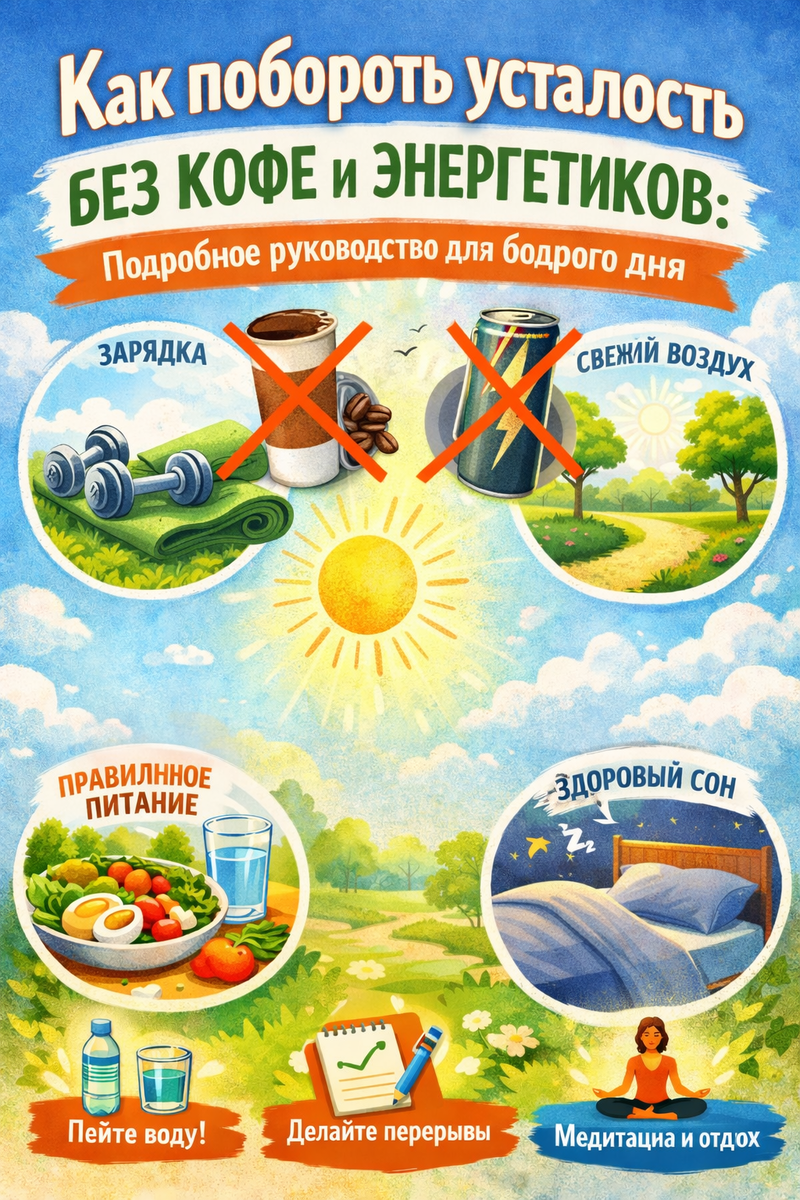 Бороться с усталостью без кофе и энергетиков реально. Физическая активность, вода, короткий сон, дыхательные практики, правильное питание, свет и контроль стресса помогают поддерживать бодрость весь день, повышают продуктивность и сохраняют здоровье.