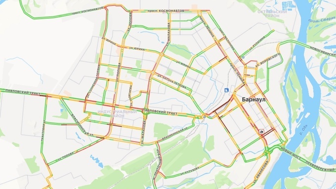 Ситуация привела к значительным затруднениям в движении по всему городу Значительные транспортные заторы парализовали дороги Барнаула в вечерний час пик 25 декабря. На основных магистралях города образовались многокилометровые очереди из автомобилей, а уровень загруженности на ряде участков достигал девяти баллов. Самая протяженная пробка растянулась от перекрестка у проспекта Строителей до проспекта Ленина. Серьезный затор также наблюдался на участке от улицы Гоголя, 38, до Красноармейского проспекта и на самом проспекте Ленина. Большая очередь машин скопилась от Иверской церкви до проспекта Строителей. Пробки образовались и на других ключевых улицах города. Барнаульцам рекомендовали избегать поездок по улицам Попова, Балтийской и Взлетной. Затор также фиксировался на Партизанской улице от дома № 176а до проспекта Ленина и на шоссе Ленточный Бор в направлении центра города. Больше материалов на amic.ru.