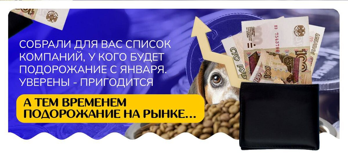 Собрали для вас список компаний, у кого будет подорожание с января. Уверены - пригодится: 👉 RICH BREED (игрушки) - на 3% с 1 января; 👉 FOR RODENT DOG (лакомства) - на 12-19% с 12 января; 👉 Альфа Пет (корма) - на 5-25% с 1 января; 👉 Веда (средства, игрушки, препараты, лакомства) - на 2-32% с 1 января; 👉 ТитБит (лакомства) - на 2% с 1 января; 👉 Виталайн (наполнители) - на 5% с 1 января; 👉 Апицена (препараты) - на 2% с 1 января; 👉 Зоомир (корма) - на 2-27% с 1 января; 👉 Ронкойлекин (препараты) - на 6% с 1 января; 👉 Артрогликан (препараты) - на 8% с 1 января; 👉 Океан Дог (лакомства) - на 21-27% с 12 января; 👉 Зоогурман (корма) - на 2% с 1 января; 👉 Верный друг (содержание и уход) - на 2-5% с 1 января; 👉 Пуси-Кет (наполнители) - на 9-11% с 1 января; 👉 Зоотехнология-М (амуниция) - на 28% с 1 января. Так что, закупайтесь по старым ценам, пока есть возможность. И, конечно, если ваша компания или кто-то, кого нет в списке повышает цены - пишите в комментариях, чтобы все были в