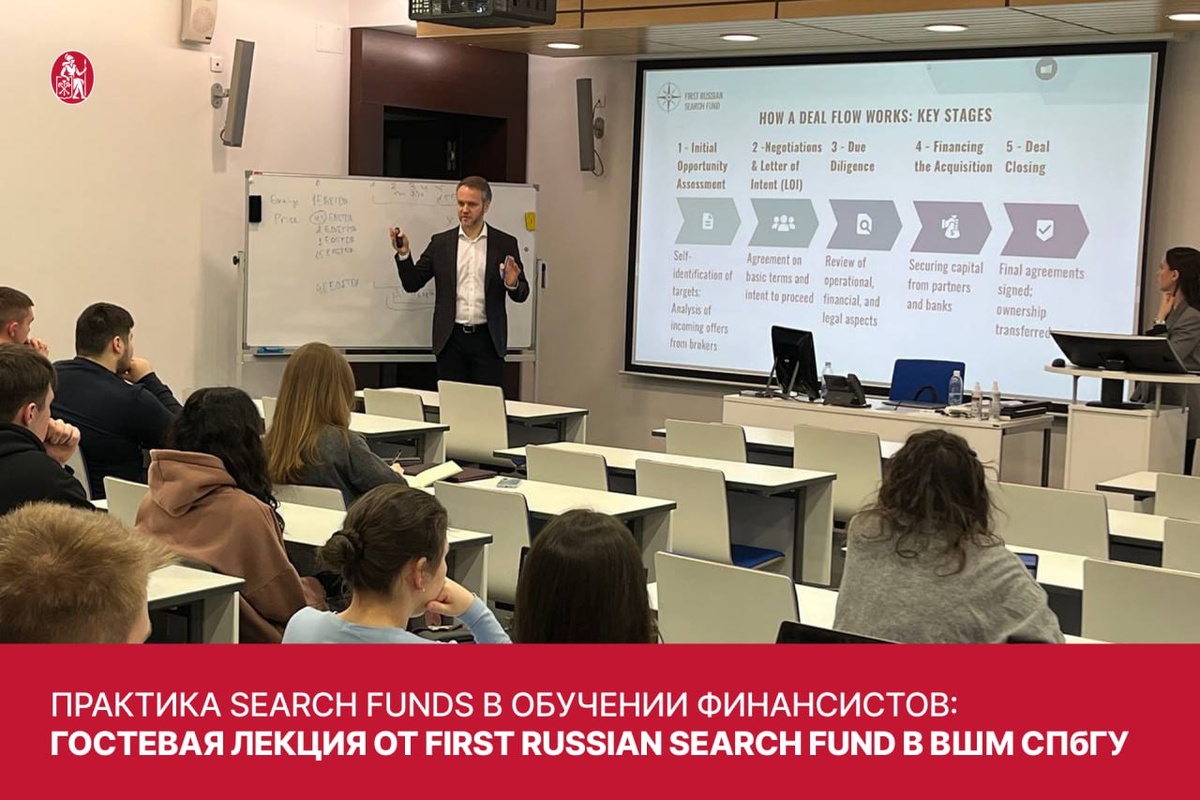 » состоялась гостевая лекция представителей private equity и акселератора поисковых фондов (search fund) First Russian Search Fund (FRSF) — компании, специализирующейся на приобретении и развитии частного бизнеса. Спикерами занятия выступили Дмитрий Голощапов, управляющий партнер, и Софья Николаева, вице-президент фонда. В центре внимания оказалась практическая сторона оценки бизнеса частной компании — именно с таким кейсом работали студенты в ходе занятия. Особый интерес у студентов вызвали инсайты спикеров о специфике индустрии private equity в российских условиях. «Сегодня ведущие работодатели смотрят прежде всего на сочетание хорошего образования, практического опыта, достигнутых результатов и внутренней мотивации. Продолжение обучения, в том числе в магистратуре, – это инвестиция, которая существенно повышает шансы на успешную карьеру в финансах. Мы также готовы консультировать лучших студентов ВШМ СПбГУ при подготовке выпускных квалификационных работ, выполняемых по теме оценки
