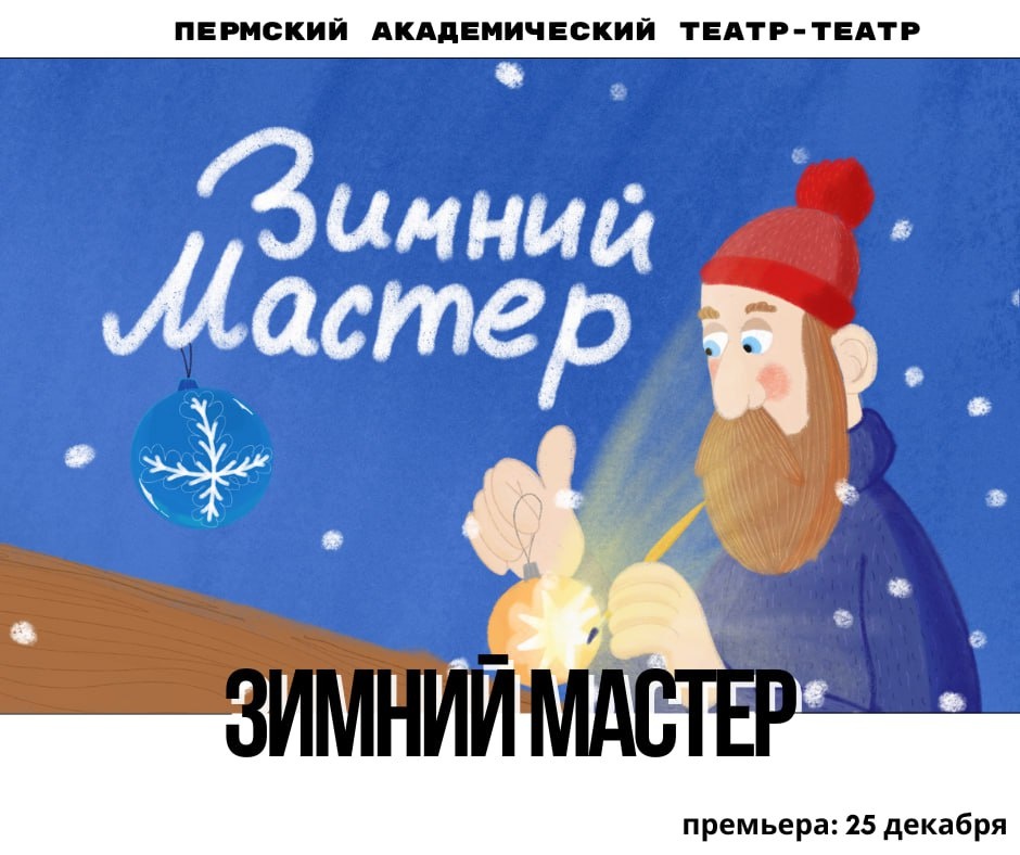 ❤️❤️❤️ Точнее было бы сказать — Пермский Театр-Тятрик; именно так называется камерная детская сцена, где и пропишется спектакль «Зимний мастер». Премьера уже сегодня, 25 декабря. В основе постановки — одноимённая повесть Нины Дашевской. Это неспешная притча о мастере ёлочных игрушек и его соседе-музыканте, чьи мелодии притягивают зиму. Книга вышла в свет в 2021 году и уже обзавелась сценической историей. Премьеру в Театре-Тятрике готовит Александра Ловянникова. В «Зимнем мастере» предусмотрен интерактив: вместе с заглавным героем дети сделают свои ёлочные шары. «Нам хотелось, чтобы каждый ребёнок унёс с собой частичку спектакля», — рассказала «Театральному журналу» режиссёр. Игрушки непростые — внутрь каждого будет помещён секретный артефакт для исполнения желаний. Основным источником вдохновения в спектакле Александры Ловянниковой стал мультфильм Фёдора Хитрука «История одного преступления» (1962). «На вооружение» был взят и принцип тотально звучащего пространства, и минимализм: д