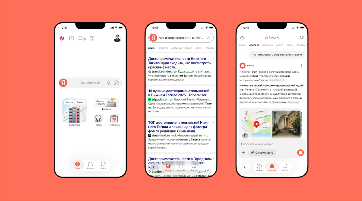 Яндекс обновил приложение «Яндекс – с Алисой AI» и внедрил в Поиск свою самую мощную нейросеть Алиса AI. Теперь пользователи могут переходить в режим диалога с нейросетью с помощью специальной кнопки «Алиса AI» под строкой поиска, значка Алисы на стартовой странице или подсказок при вводе запроса. Новый режим позволяет решать сложные задачи в диалоговом формате. В отличие от стандартных «быстрых ответов», чат с Алисой AI поддерживает контекстные уточнения, загрузку документов и работу с изображениями. Например, при планировании поездки нейросеть не только составит маршрут, но и приложит фото, график работы заведений и карточки организаций. Режим поиска с Алисой AI также позволяет продолжить решать задачу с того места, где пользователь остановился, что может быть полезно в тех случаях, когда он работает над долгим и сложным проектом. В чате с Алисой AI при нажатии на боковую панель слева можно перейти к прошлым запросам, посмотреть информацию, которая уже была в ответах нейросети, или з