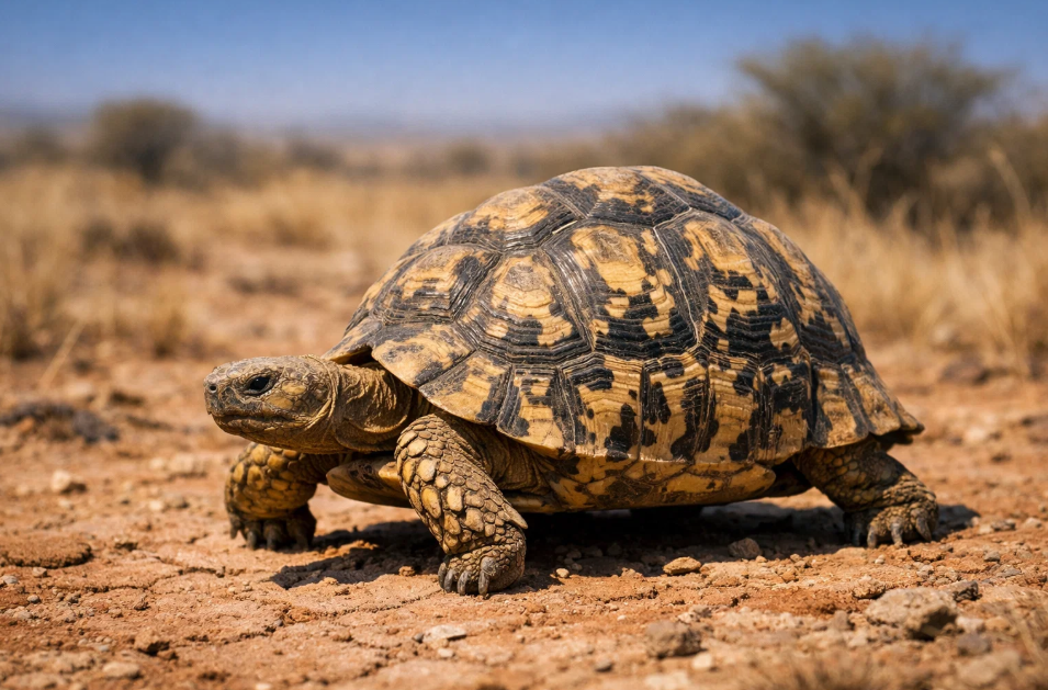 Под палящим солнцем африканских саванн и сухих кустарниковых нагорий медленно движется одно из самых удивительных существ планеты. Его панцирь, напоминающий сложную художественную мозаику из тёмных и светлых элементов, кажется произведением искусства, созданным самой природой. Это леопардовая черепаха, известная также как гепардовая или стигматахеис — крупнейшая сухопутная черепаха Африки и вторая по величине в мире после своих родственников с Галапагосских и Сейшельских островов.