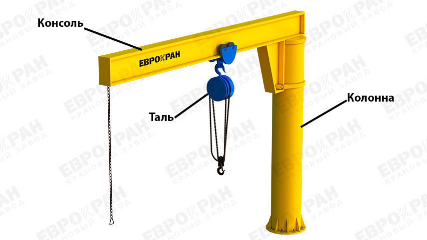 Консольные краны занимают особое место среди грузоподъемного оборудования. Они используются там, где требуется локальная зона обслуживания, точное позиционирование груза и компактное размещение оборудования. В отличие от мостовых и козловых кранов, которые перекрывают значительные площади, консольные решения предназначены для работы в ограниченном радиусе и часто дополняют основную крановую систему предприятия. Консольный кран состоит из вертикальной опоры или настенного крепления и поворотной стрелы, по которой перемещается груз. Подъем выполняется с помощью тали или тельфера. Такая конструкция позволяет обслуживать отдельный рабочий пост, участок сборки, станок или зону складирования без перегрузки пространства металлоконструкциями. Консольные краны широко применяются на производственных предприятиях, в ремонтных зонах, на складах, в сервисных цехах и логистических комплексах. По способу крепления консольные краны делятся на несколько основных типов. Консольные краны на колонне уста