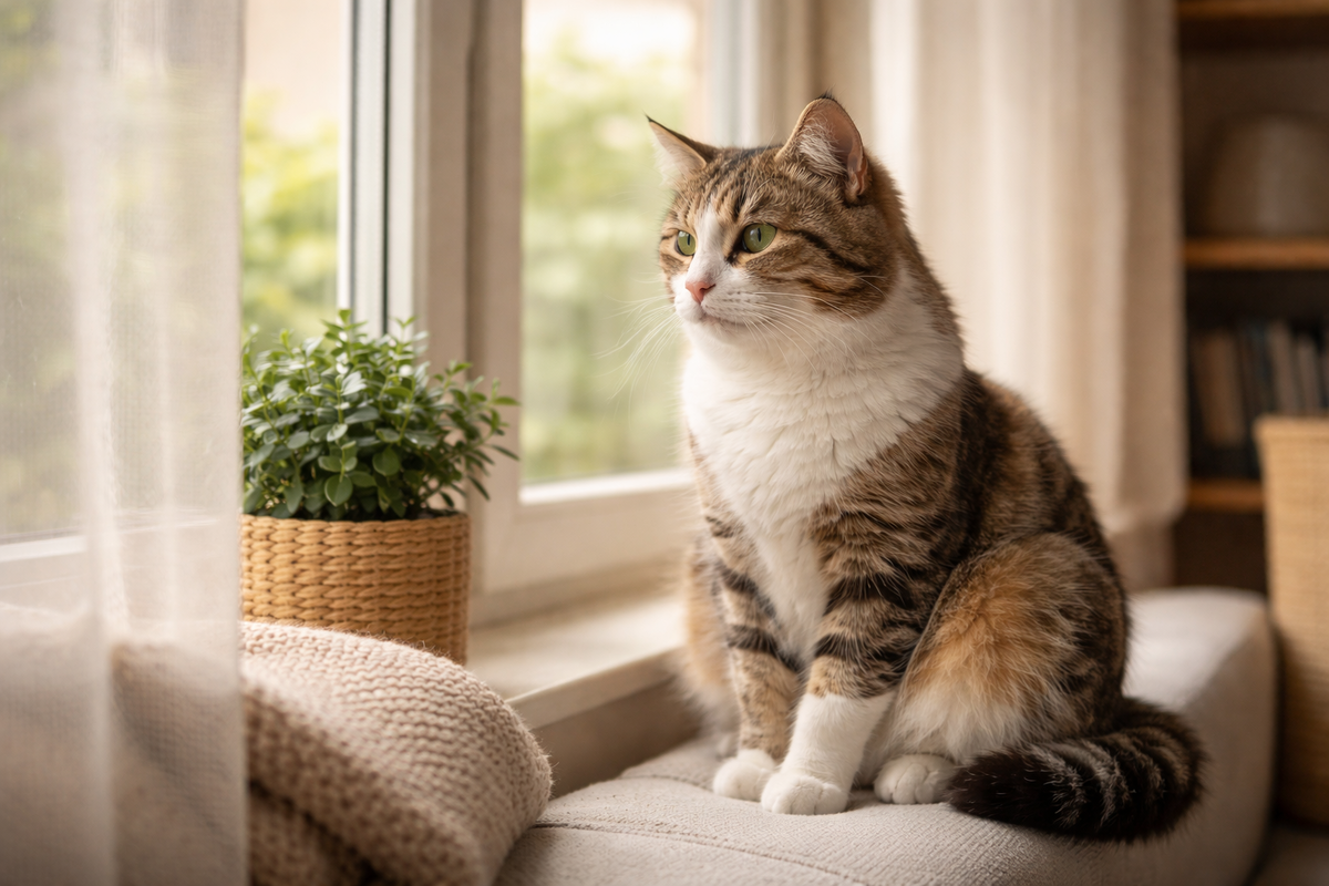 Важно понимать: кошка не «тоскует» в человеческом смысле. Но стресс может выражаться иначе - через снижение аппетита, замкнутость, чрезмерное вылизывание или проблемы с шерстью.