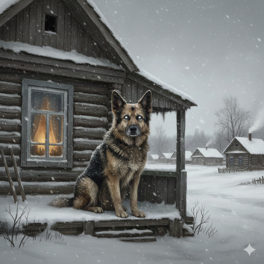 Согласно статистике, в глухих деревнях России ежегодно тысячи домашних животных остаются в одиночестве в опустевших домах после смерти хозяев. Эта история — об одной из таких забытых судеб, в которой скрыта целая вселенная человечности и преданности. Деревня Ольховка в Тверской области — место, где время словно замерзло. Ледяной зимний ветер царапает ставни старых изб, а запах дыма из печей смешивается с ароматом снега, создавая тот самый горьковатый привкус русской зимы. На самой окраине, в маленьком, почти вросшем в землю домике, жила баба Вера. Ее единственным спутником был Буран — старый, ослепший от катаракты метис овчарки. Имя Буран было дано ему не зря. В молодости он был стремительным и мощным, как снежная буря. Но годы взяли свое. Теперь лапы Бурана ныли на холоде, слух притупился, а мир превратился в набор запахов и размытых теней. Баба Вера была под стать своему другу: сгорбленная, с вечно дрожащими руками, но каждое утро она неизменно варила для Бурана теплую кашу. — Буранч