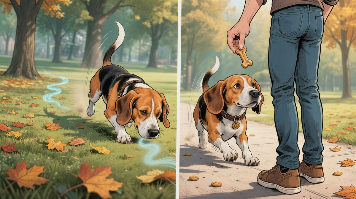 Если у вас Бигль, есть момент, который почти неизбежен. Он знает команду. Он слышал её сотни раз. Он даже выполнял её вчера. Но сегодня — запах. И вас будто не существует. В этот момент многие владельцы думают: «Он что, специально?» «Я плохо его воспитал?» «Может, это просто упрямая порода?» И здесь важно остановиться. Не для того чтобы оправдать собаку — а чтобы честно разобраться, что вообще происходит между хозяином и собакой. Бигль — не просто активная собака с хорошим нюхом. Он выведен для самостоятельной работы по следу, где человек не стоит рядом и не «подсказывает» каждую секунду. Когда Бигль «уходит в запах», в его голове не происходит конфликт: «Послушаться или нет?» Происходит другое — мозг полностью переключается на задачу, ради которой эта собака существует уже сотни лет. Исследования работы обонятельной системы подтверждают, что у гончих пород запах может буквально «выключать» всё остальное внимание. Это не про характер и не про вредность. Это про биологию. Поэтому вопрос