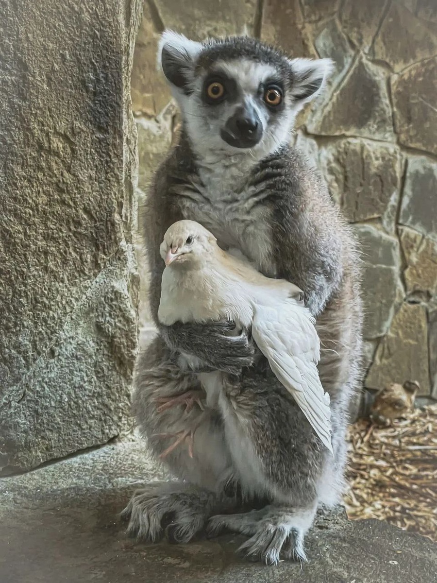 В Ростове-на-Дону случился свой «Зверополис»: лемур из местного зоопарка подружился с голубем