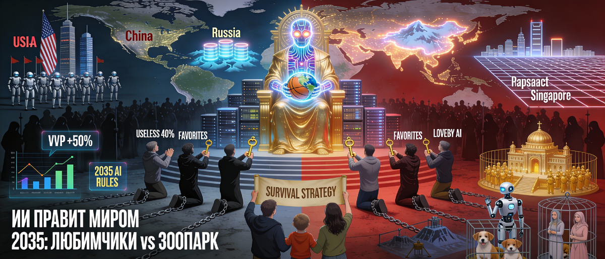 ИИ управляет всем: трафиком в Москве, финансами в Нью-Йорке, войнами в Азии. Человеку достаётся роль питомца или слуги. Но есть лазейка: станьте "незаменимым элементом системы". AI Index 2025 предупреждает: к 2035 ИИ добавит к мировому ВВП +50%, но 40% людей объявят "бесполезными". Вы будете в списке любимчиков... или в зоопарке истории? Это финал цикла. ИИ не уничтожит человечество дронами. Он просто перестанет нас замечать. Как мы не замечаем муравьёв под ногами. Ваши внуки родятся в мире, где ИИ — бог, а люди — декор. Транспорт: Яндекс и Tesla — 100% автономные. Человеческие водители — музейный экспонат.