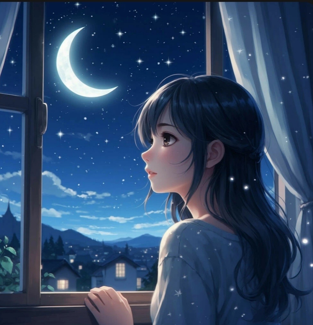 Но Лия ждала не звёзд. Она ждала его — тонкий, изящный полумесяц, который появлялся не каждую ночь. Для неё это был не просто кусок освещённой Солнцем скалы. Это был серебряный кораблик, плывущий за стеклом, крючок, на который можно повесить все свои мысли, или улыбка самой ночи, приоткрывшей губы для беззвучной песни.