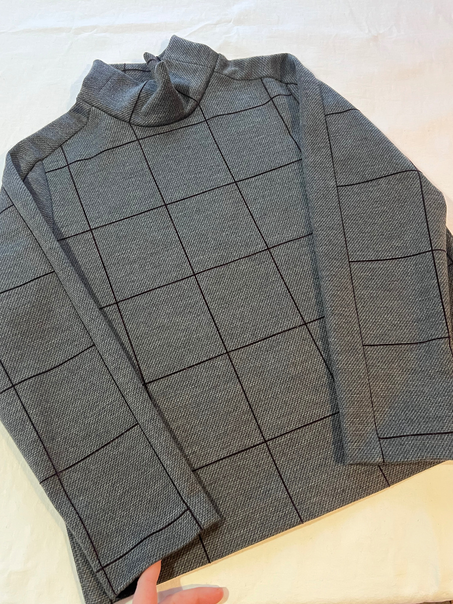 Кстати, на нём я тоже сделала однотонные вставки . И вот и кажется, что такой простой свитер и что там шить. А на самом деле это изделие требует точности, чтобы совпала не только клетка, но и все швы: