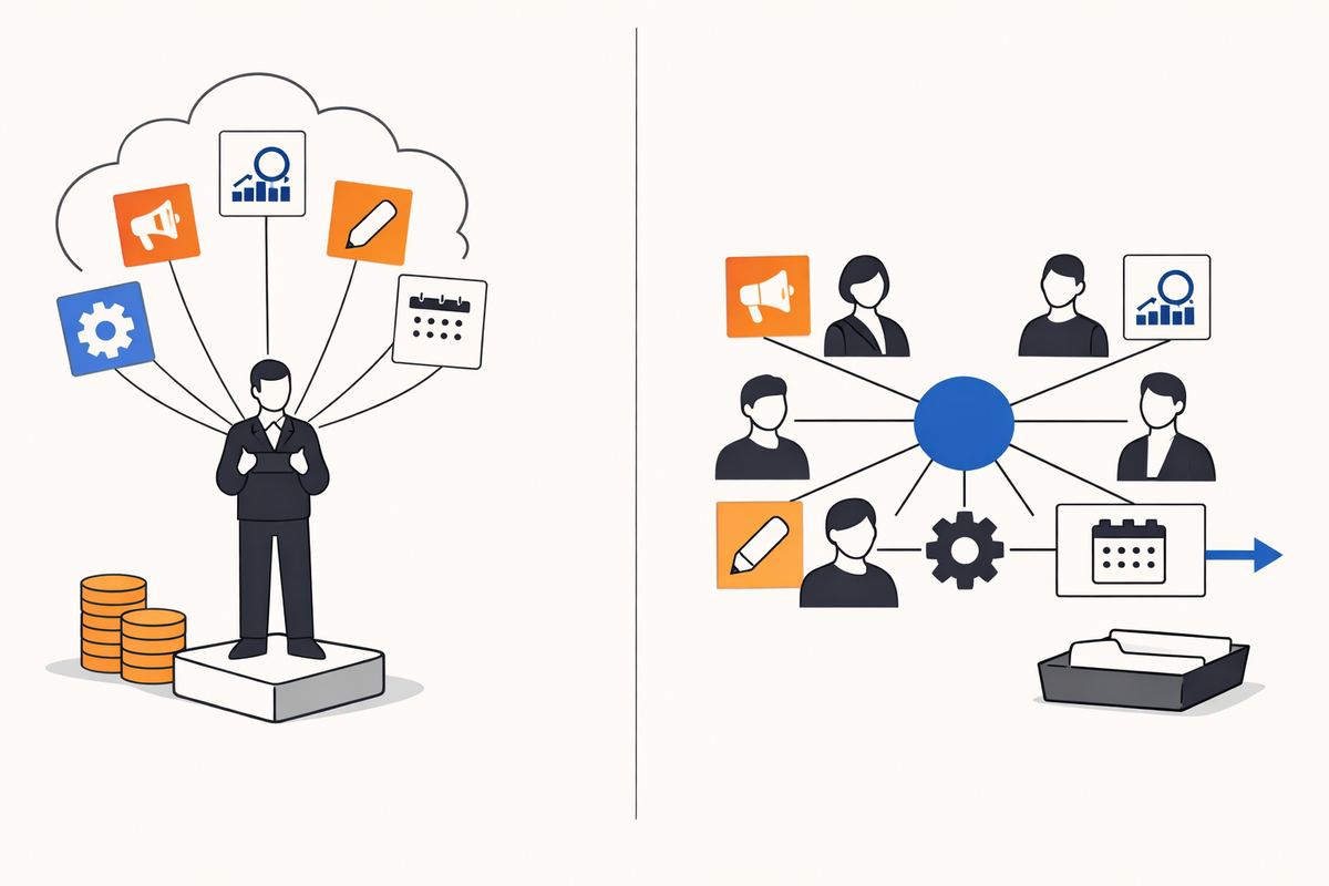 Штатный маркетолог стоит дороже, чем вы думаете. Потому что вы платите не за маркетинг — вы платите за надежду, что один человек закроет 5 ролей.