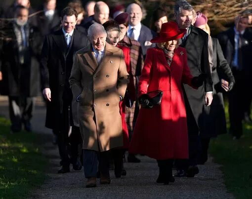 Королевская семья прибыла в Сандрингем на ежегодную рождественскую церковную службу. Король Карл, одетый в бежевое пальто, и королева Камилла в красном длинном пальто и шляпе в тон провели группу в церковь Святой Марии Магдалины на ежегодную церковную службу. Камилла была в праздничном красном пальто и стильной шляпе, когда шла рядом с улыбающимся королём Карлом солнечным, но пронизывающе свежим утром четверга. К королю Карлу и королеве Камилле присоединились Кейт, принцесса Уэльская, принц Уильям и их дети: принц Джордж, принцесса Шарлотта и принц Луи. На церемонии присутствовали принцесса Анна, ее дочь Зара Тиндалл с мужем Майком. На фото между Майком и Зарой идет их 7-летняя дочь Лена. Принц Эдвард и Софи пришли со своими детьми Джеймсом, графом Уэссекским и Леди Луизой Виндзор. Принцесса Беатрис и принцесса Евгения, чье присутствие изначально отрицалось, отправились на службу оставив дома детей, но прихватив мужей. Обе сохраняли невозмутимый вид на фоне продолжающейся скандалов с