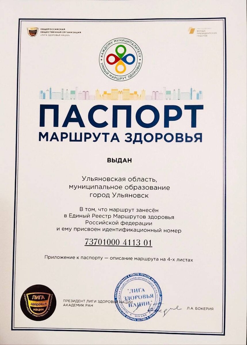 Выдали паспорт на маршрут здоровья в ульяновском парке Победы