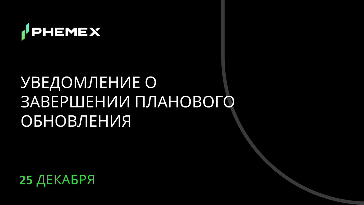 Сегодня, 25 декабря 2025 г., мы провели плановое обновление системы для повышения надёжности платформы. Время: 06:00–07:00 МСК; Пользователи с UID от 8 300 000 до 8 800 000. Затронутые сервисы: переводы средств; конвертация активов; депозиты и выводы; торговля линейными бессрочными фьючерсами (USDT/USDC‑маржа). Максимальная пауза в торговле — до 5 минут. Всё завершилось штатно! Если у вас остались вопросы или возникли сложности, обратитесь в службу поддержки Phemex — мы оперативно поможем. 🌐 https://phemex.com/announcements/release-announcement-December25202503000400UTC