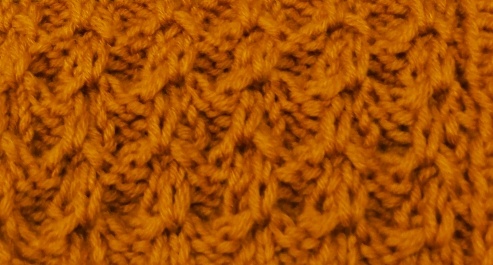 Узор плотный, напоминает маленьких пчелок. Подходит для шапок, детских и плечевых изделий. РАППОРТ УЗОРА Число петель, кратное 4, плюс 2 кромочные 1, 2, 5, 6, 8, 11, 12 и 14 - й ряды: *2 изнаночные, 2 лицевые*. 3 - й и 9 - й ряды: *2 изнаночные, 2 петли снять как изнаночные (нить впереди работы)*. 4 - й и 10 - й ряды: *2 петли снять как изнаночные (нить впереди работы), 2 лицевые*. 7 - й ряд: *2 изнаночные, провязать вместе лицевой нити предыдущих рядов и следующую петлю, 1 лицевая*. 13 - й ряд: *2 изнаночные, 1 лицевая, провязать вместе лицевой следующую петлю и две нити предыдущих рядов, как в 7 - м ряду*. 15 - й ряд: повторять с 3 - го ряда.