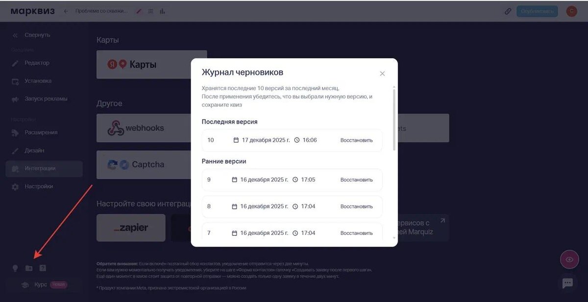 Оказывается, в Макрвизе хранятся последние 10 версий квиза. Если тоже не знали об этом, то найти их можно в этой вкладке 👆