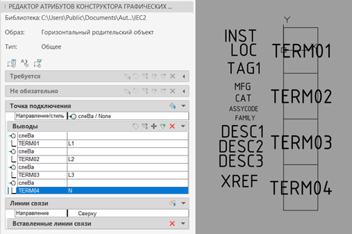 Предлагаю свой вариант УГО шинной сборки на 4 шины L1, L2, L3 и N. Компонент состоит из родительского и нескольких клемм с номером провода. 1. Создала горизонтальный родительский компонент, который содержит графику, основные атрибуты и обозначения шин. Атрибуты нужны для того, чтобы можно было изменять их значения. Значение атрибута TAG1 по умолчанию – В. Атрибут XREF можно не добавлять или сделать скрытым. 2. Вставила родительский компонент. Создала 4 провода. Назначила им номера проводов - L1, L2, L3 и N. Вокруг номеров создала дополнительную графику. Вставила клеммы с номером провода. Клеммам присвоила поз. обозначение В1. Номер клеммы = номер провода. Добавила автоматические выключатели QF1…QF4. Перечень элементов: Таблица соединений: Я 🩷AutoCAD Electrical !