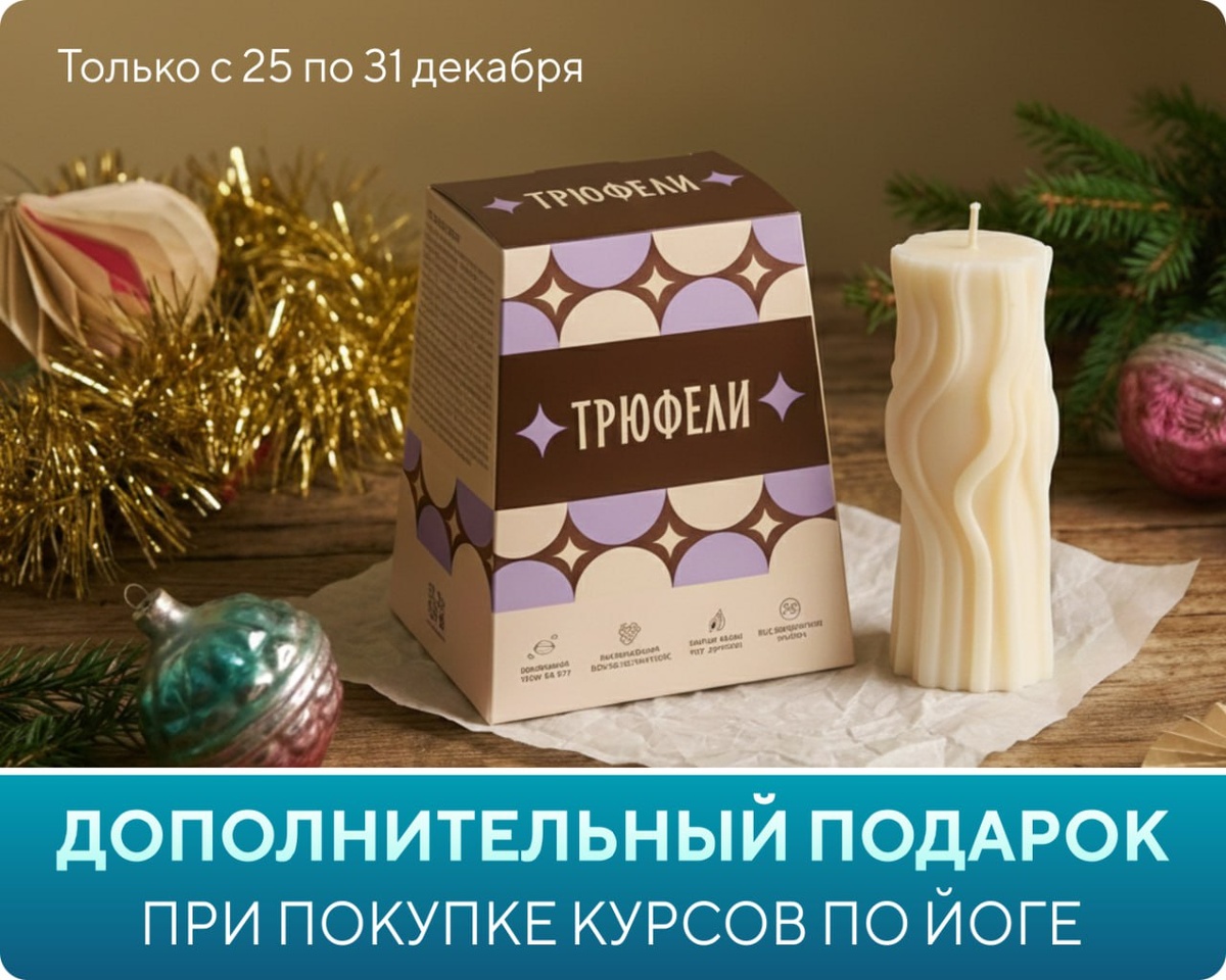 ! Эх, гулять так гулять! Что-то мы совсем расщедрились в этом году. Оплатите наши курсы и получайте новогодние подарки от партнера ПОЛНОСТЬЮ ЗА НАШ СЧЕТ! Да-да, 100% компенсация! Только с 25 по 31 декабря, вы можете бесплатно получить: • Трюфели — при оплате доступа к курсам клубной карты (5 990 ₽) • Трюфели + Арома-свеча — при оплате обучения на тичерс-курсе по тарифу «Инструктор» (23 390 ₽) или любой товар на сайте по аналогичной стоимости ✅ Как получить? 1. Создайте и оплатите заказ на выбор: Доступ к курсам Брамари навсегда за 5990 ₽ или Курс инструкторов йоги за 23390 ₽ 2. Пройдите регистрацию на сайте партнёра 3. Выберите и оплатите товар на этой или другой странице магазина 4. Пришлите нам фото чека и товара в этот бот 5. Получите компенсацию в сумме 590 или 1990 руб. в течении 15 дней 👉 Полные условия ЗДЕСЬ 😍 И это всё в дополнение к действующей акции. ❄️ До Нового года и до конца акции осталось 7️⃣ дней.