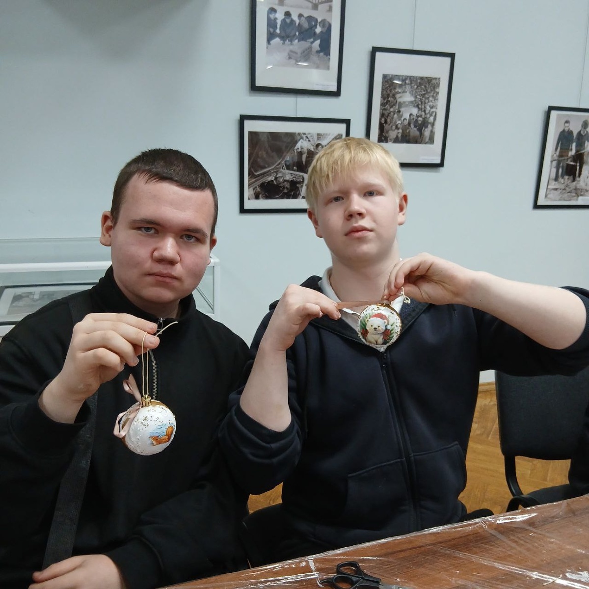 На очередной новогодний мастер-класс по декорированию ёлочного шара пришли старшеклассники столичной СОШ №55
