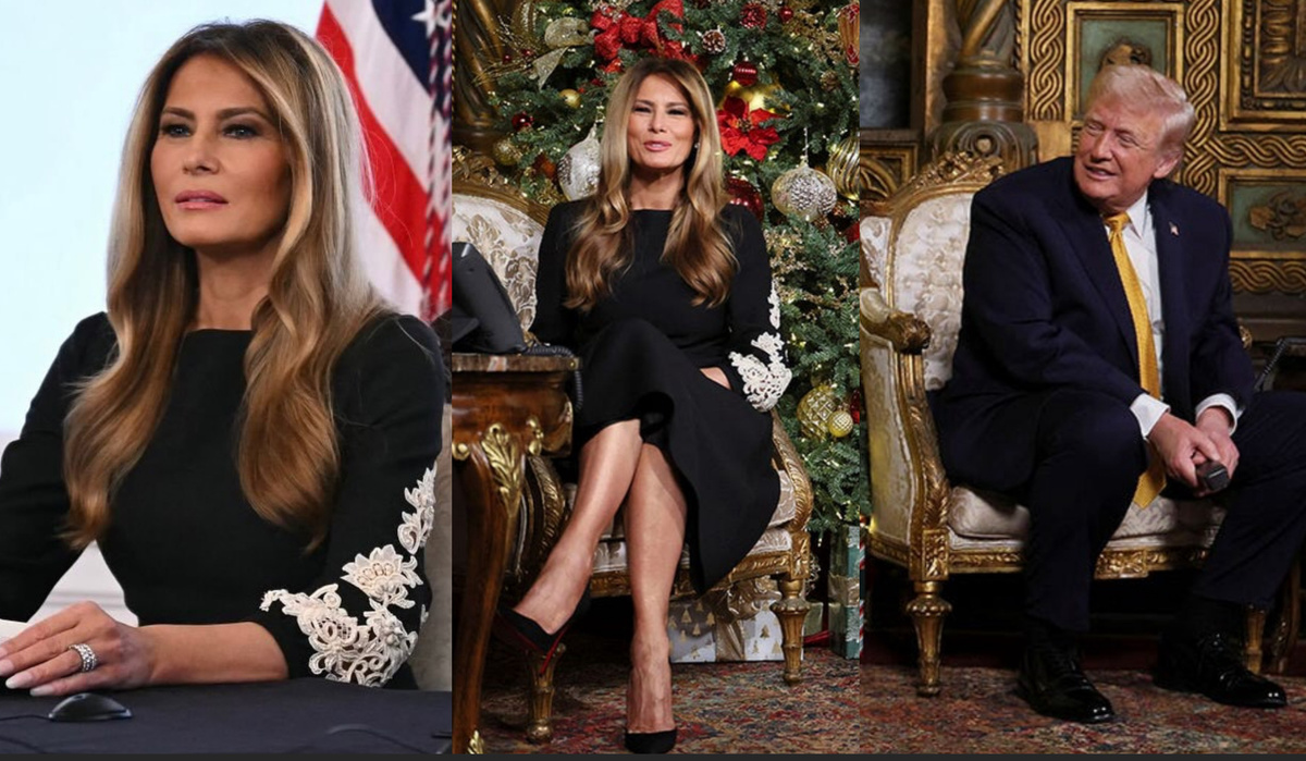 Рождественский вечер Мелании Трамп в 2025 году начинается с традиции, которую в США берегут особенно внимательно. В канун праздника она вместе с Дональдом Трампом из резиденции Mar-a-Lago отвечает на телефонные звонки американских военнослужащих, находящихся на службе вдали от дома. Эти разговоры всегда короткие, личные и лишённые официального тона. Для многих солдат это один из немногих моментов прямого контакта с первыми лицами страны именно в рождественную ночь, когда расстояние между домом и службой ощущается особенно остро. Камеры фиксируют спокойный ход вечера, без спешки и без попытки превратить происходящее в шоу. После звонков вечер не обрывается. В той же резиденции проходит торжественный рождественский приём, и здесь возникает деталь, которую мгновенно подхватывает глянец. Мелания остаётся в том же самом образе. Без смены платья, без отдельного «вечернего выхода». Платье, в котором она провела весь вечер, — чёрное миди от Dolce & Gabbana с характерной для дома кружевной апп