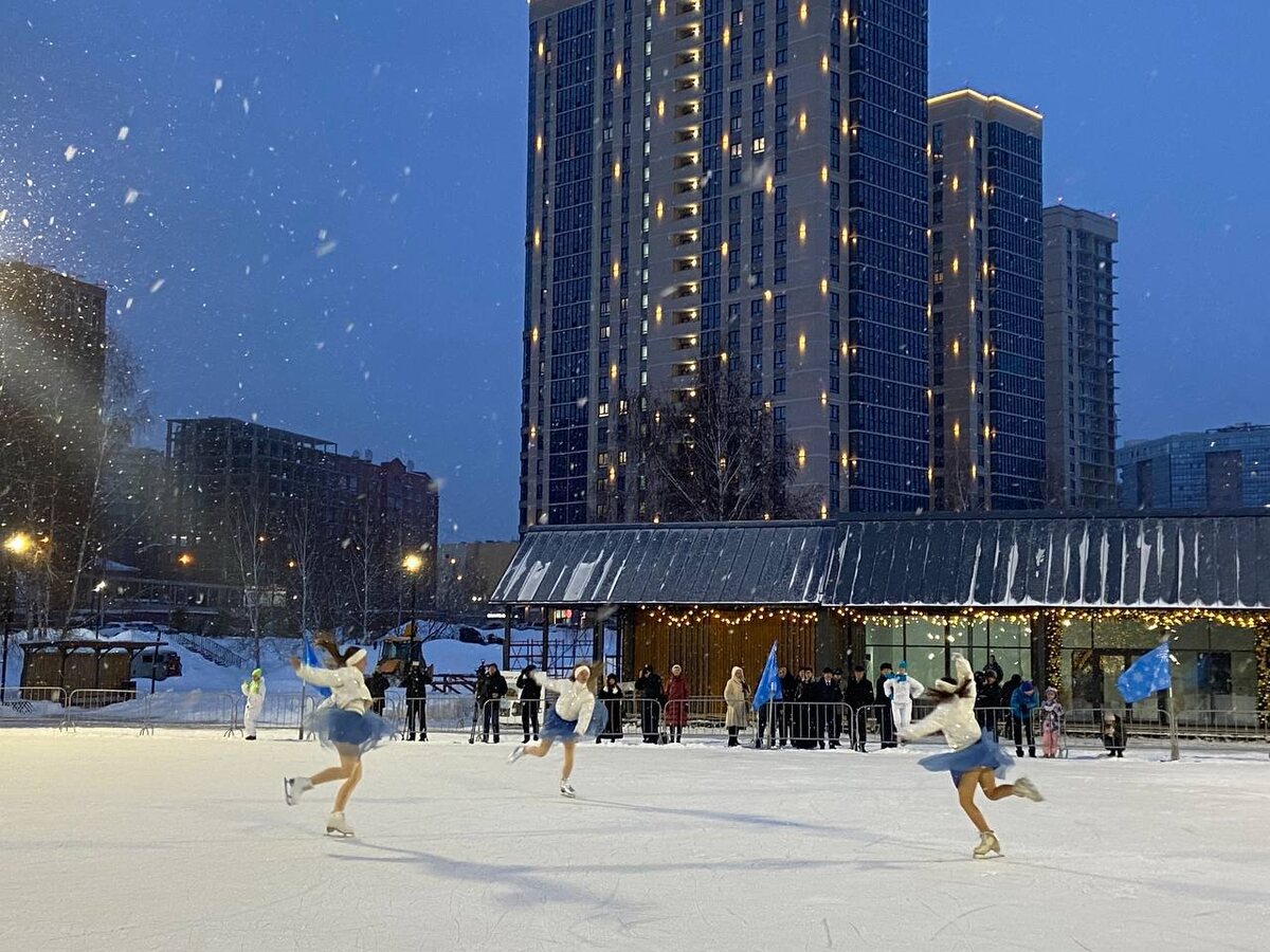 В новом Бугаков-парке открыли новогоднюю площадку с ёлкой и катком