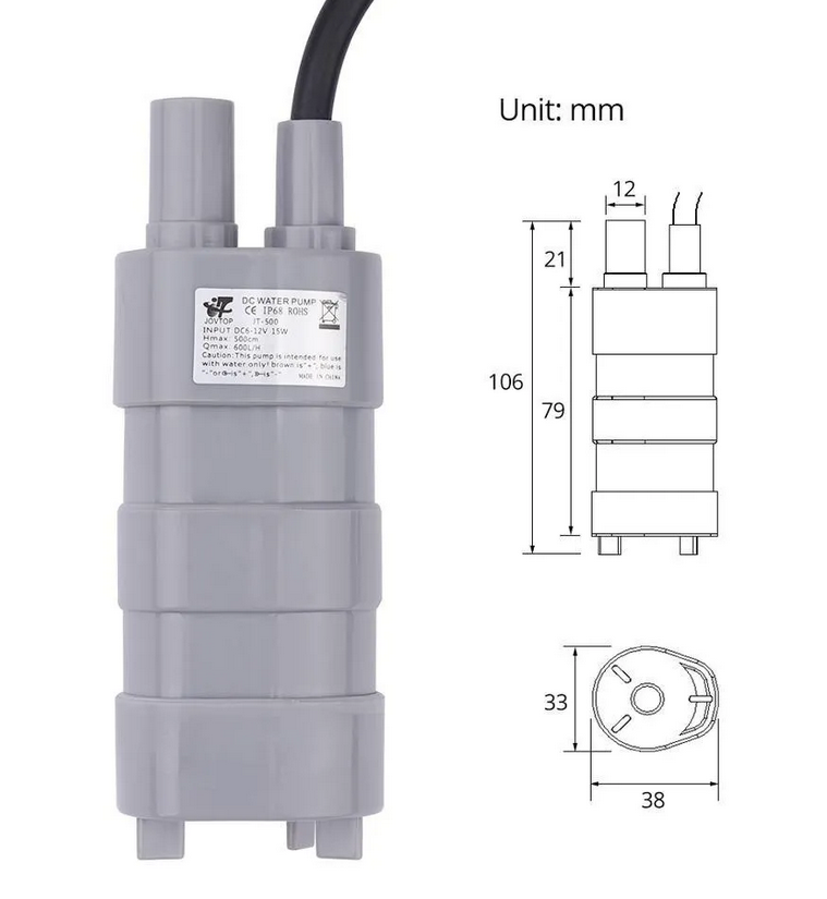 Доработка угольной фильтровальной колонны на базе погружного насоса JT500 600л/ч 12V