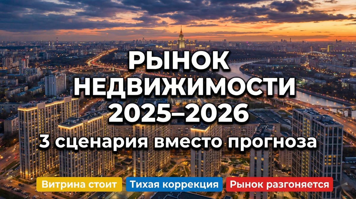 Здесь — другой подход: три сценария движения рынка, конкретные признаки каждого и пошаговый план действий для покупателя и инвестора. Не угадывать будущее, а подготовиться к любому из вариантов.