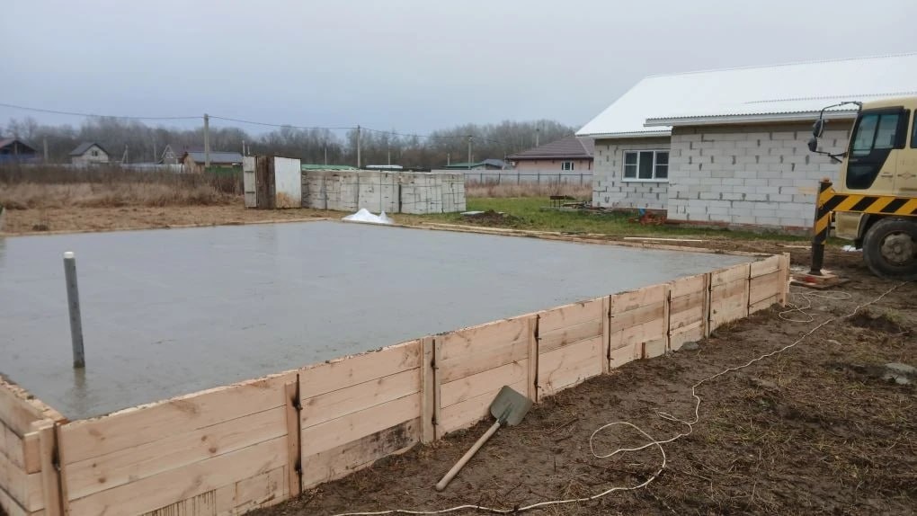Здесь фундамент прячем под плёнку и оставляем до января следующего года.