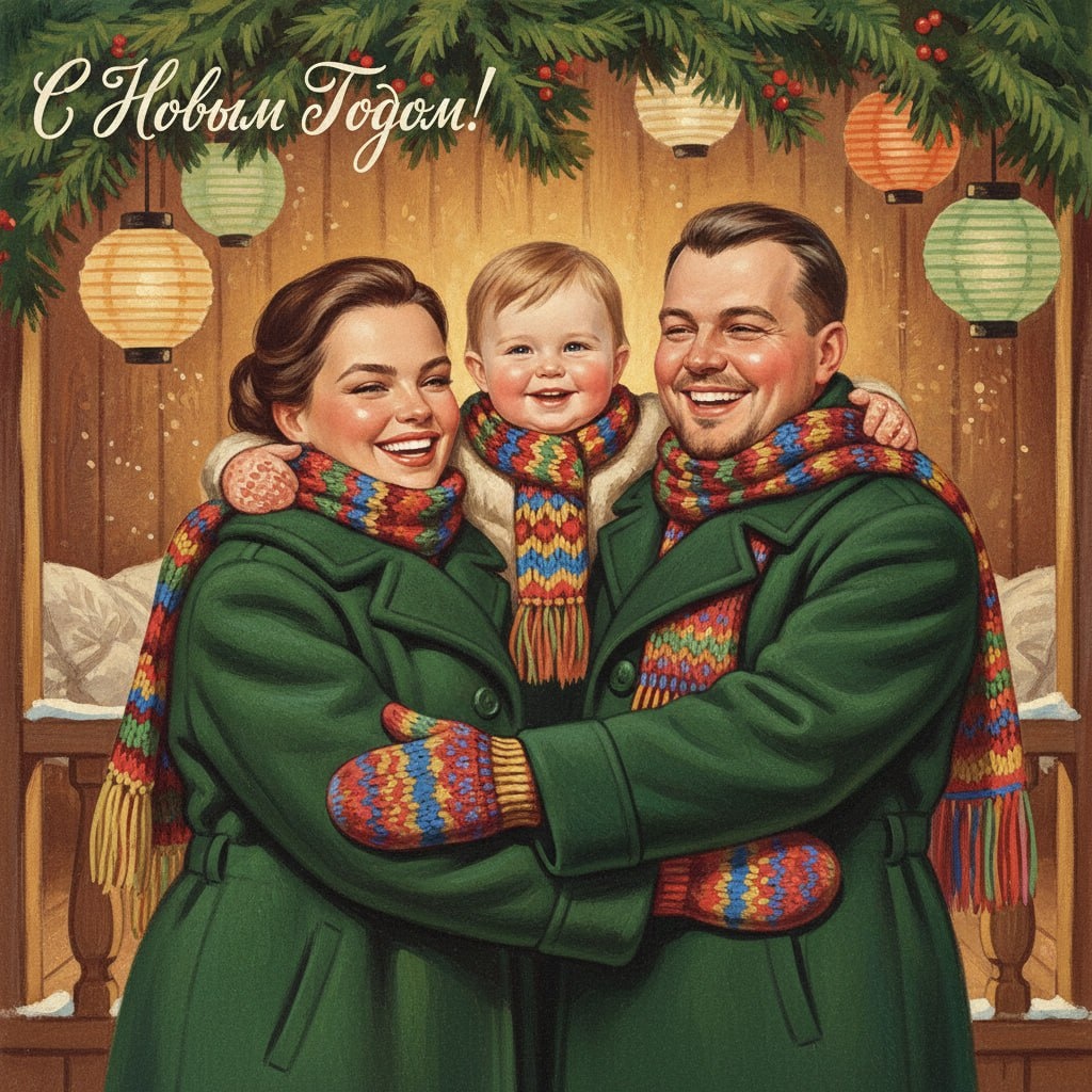 Забываем про скучный фотореализм и создаем настоящую историю. Эти промпты переносят лица на аутентичную новогоднюю открытку 50–70-х годов с той самой поздравительной надписью. ⚡️ Никакого «пластикового» ИИ-глянца — только мягкая гуашь, текстура старой бумаги и ламповая атмосфера из детства. 🗿 Идеально, чтобы замутить эксклюзивное поздравление для всей семьи. Закидываем рефы в SeeDream, выкручиваем сходство и получаем готовую открытку. Пробуем в чат-боте. 🛑 #Новогодний_промпт Вариант для неё 👩🦰 Используя загруженное селфи в качестве точного ориентира для лица со 100-процентным совпадением (--face_fidelity 1.0), создайте фотографию по описанию, сохранив полное сходство с оригиналом. Подлинная иллюстрация с советской новогодней открытки в стиле 1950–1970-х годов. [Средний план] женщины (загруженное селфи) с теплым дружелюбным выражением лица, в [старинном коричневом зимнем шерстяном пальто с пышным белым меховым воротником и ярко-красном вязаном шерстяном шарфе]. В верхнем углу — сти