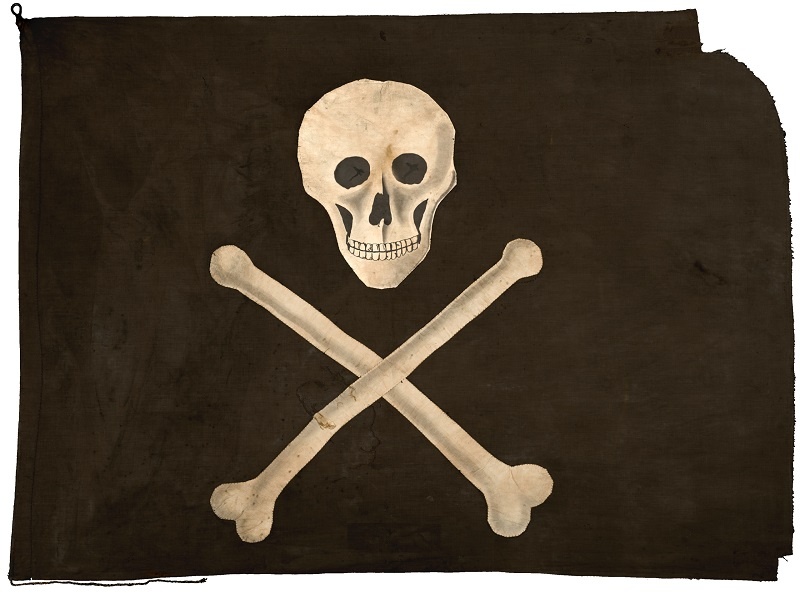 Что известно об устрашающем пиратском флаге? Все знают, что пираты бороздили моря под чёрным флагом, и флаг этот называется «Весёлым Роджером». Но вот тут и начинаются разные вопросы. И не на все есть ответы. Первым делом следует учесть, что постоянно ходить под специальным «пиратским» флагом никто и не думал. Иначе пиратов было бы видно издалека, в том числе хорошо вооружённым военным кораблям. «Весёлый Роджер» вывешивался пиратами перед нападением (даже на суше, а такое случалось), чтобы жертва понимала, что к ней направляется не капер и не правительственное судно, а те, кто заранее готов к виселице и никаких правил соблюдать не намерен. «Весёлый Роджер». (Wikimedia Commons) Приближаясь к цели, пиратский корабль мог демонстрировать чужой или ложный флаг или не вывешивать опознавательных знаков вообще. Затем поднималось чёрное полотнище и следовал предупредительный выстрел, а если противник не спускал свой флаг и не сдавался, можно было добавить и красный флаг (предполагается, что чёр