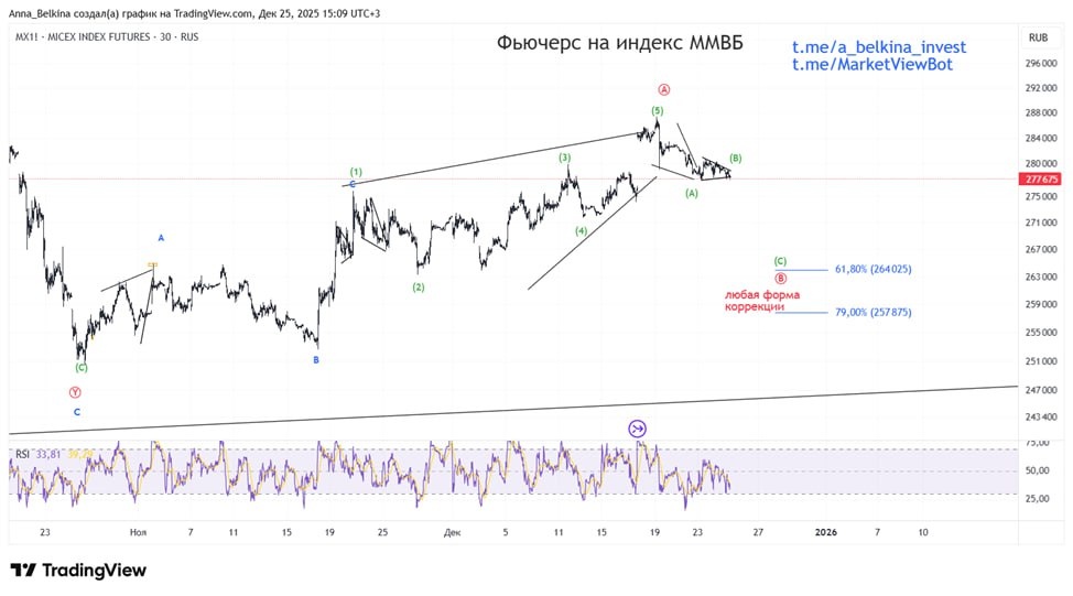 Пока нисходящая коррекция на российском рынке по индексу ММВБ и фьючерсу на индекс ММВБ принимает вид одинарного зигзага в волне [B] of d треугольника. Волна [B] может принять любой вид коррекции - разновидность зигзага, треугольника или плоскости. Пока в развитии идет зигзаг. Не является ИИР 💪 БОЛЬШЕ разметок в Закрытом канале: Бот Закрытого Канала, доступен Пробный Период! (подписаться из-за границы, пишите личным сообщением)