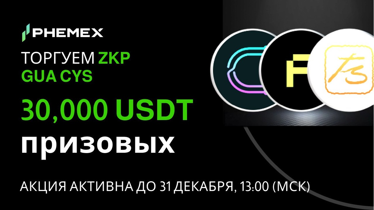 ! 📅 До 31 декабря, 13:00 (МСК) 🎫 Нажмите на кнопку Регистрация Сейчас на странице акции https://phemex.com/en/events/token-fiesta/757?group=6006&referralCode=DFC6T7 Событие 1: 10,000 USDT 💰! 🔸 Торгуйте 100+ USDT на фьючерсах токенами акции → 🎁100 USDT (Для новичков) 🔸 Торгуйте 1,000+ USDT на фьючерсах токенами акции ежедневно в течение ≥3 дней → 🎁20 USDT 🫶 Приглашайте 2 друзей торговать на фьючерсах токенами акции 100+ USDT → 🎁20 USDT Событие 2: Конкурсу на фьючерсах, 20,000 USDT💰! 🔸 Топ 1,000 трейдеров, по объему торговли CYSUSDT, ZKPUSDT, GUAUSDT, но не менее 5,000 USDT, разделят призовые.