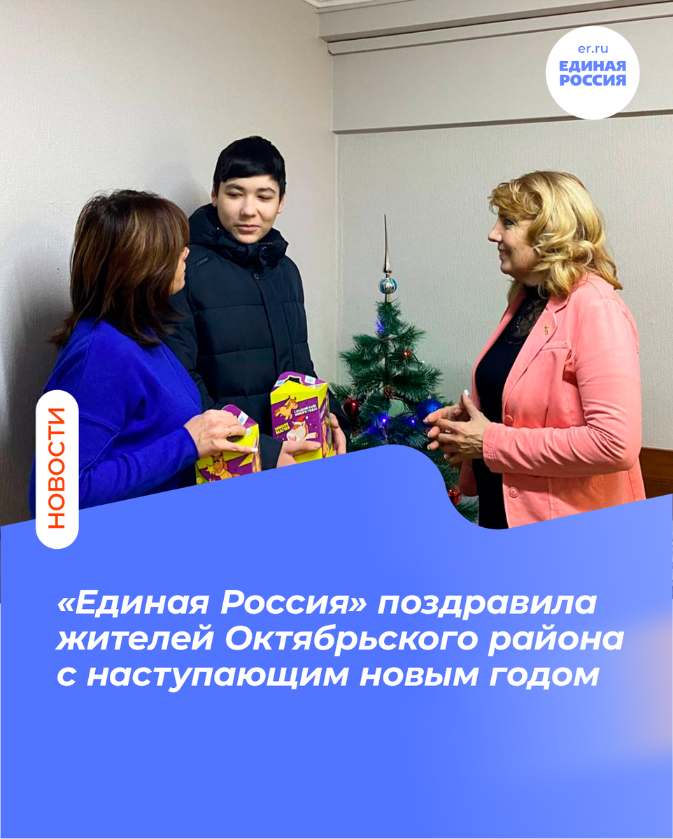 Исполнительный секретарь местного отделения партии «Единая Россия» Октябрьского района Диана Дроздова навестила членов Совета ветеранов и передала им сладкие подарки и слова поздравления с пожеланиями крепкого здоровья, активного долголетия, энергии и исполнения желаний от депутата Госдумы Глеба Хора.