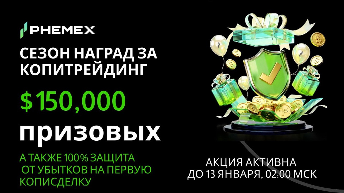 ! 📅 Активна до 13 января, 02:00 МСК 🎫 Нажмите на кнопку Регистрация Сейчас на странице акции https://phemex.com/ru/promo/activity/752?group=6006&referralCode=DFC6T7 Что вас ждёт: - 🛡 100 % защита от убытков на первую кописделку (сумма ≥ 100 USDT); - 🎁 До 100 USDT для новичков (за 5 кописделок); - 💰 До 500 USDT за общий объём копитрейдинга; - 👥 5 USDT за каждого приглашённого друга (если он совершит кописделку ≥ 100 USDT); - 🎰 Тайная коробка — шанс выиграть до 400 USDT. Обновлённый режим копитрейдинга уже доступен — участвуйте и получайте призы!