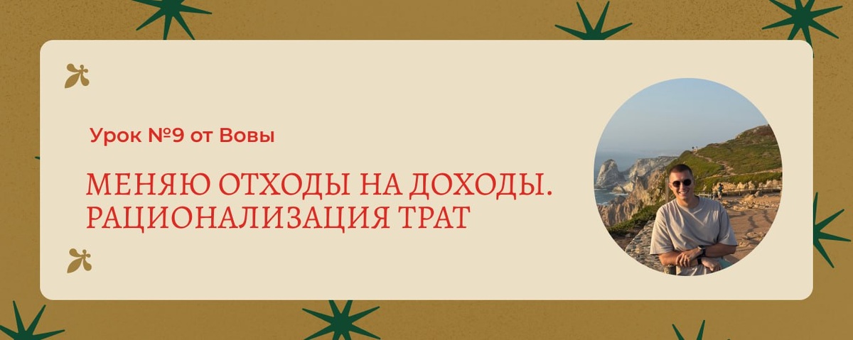 Меняю отходы на доходы. Рационализация трат 💸 Начинаем модуль по финансам уроком от Вовы! Раньше мы мало задумывались о повседневных тратах, редко смотрели на цены. Сейчас сохранять тот же подход = быстро растерять контроль над деньгами Но это не значит, что нужно удариться в тотальную экономию — мы рационализировали наши расходы, и тратим заметно меньше, не теряя в качестве жизни О нашем опыте — читайте в девятом уроке 🔗 Будем честны, тема актуальная)) Интересно послушать вас: как вы оптимизируете расходы/доходы в новой реальности?