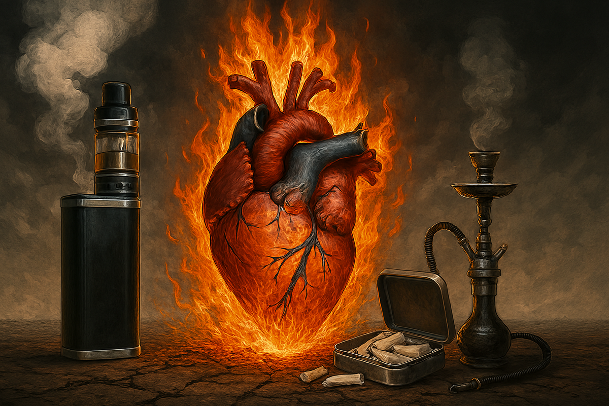 Результаты оказались тревожными: вейпы, нагреваемый табак, никотиновые пакетики, кальяны и традиционные сигареты наносят сопоставимый вред сердечно-сосудистой системе.