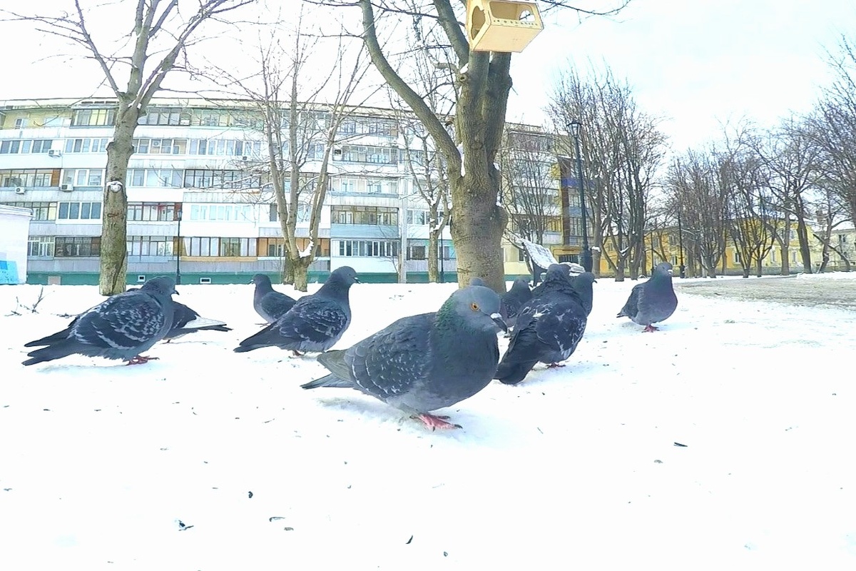 Сегодня, дорогие читатели, у нас обещали мороз в 19 градусов. Вчера тоже было холодно. Птички, видимо, за ночь намерзлись. Первая синичка прилетела на кормушку в 8 часов. Это еще раньше, чем вчера. Возможно, по утрам, пока на кормушке никого нет, прилетает одна и та же синичка. Видимо, вечером, когда на кормушке ажиотаж, до нее очередь не доходит. И она старается напитаться калориями с утра пораньше. Во второй половине дня мне надо было пойти по делам и я решила на обратном пути заехать в сквер и поснимать там птиц на кормушке. Взяла маленькую камеру на прищепке, семечки, пришла к кормушкам, заправила их семечками и прицепила камеру на бортик. И... ничего) Птички долетали до кормушки, замечали камеру и в панике бросались в сторону. Я подождала минут 10. Но потом камеру убрала - зачем мучить тех, кто голоден. Но решила насыпать еще немного семечек под кормушкой, на открытом пространстве и рядом опять поставить камеру - а вдруг на земле она меньше напугает птиц... Поставила. Насыпала сем