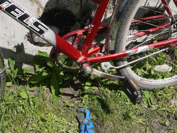 В нашем хозяйстве есть велосипед фирмы Stels, который является не только верным помощником в ежедневных делах, но и отличным сбрасывателем жира лишних калорий. Данный велосипед – самой бюджетной версии, без спортивных амбиций, тем не менее, исправно выполняет свою работу, ездить на нём на рыбалку - одно удовольствие. Закинуть автору на чай можно здесь. Но, как часто бывает, детали недорогих велосипедов имеют не очень большой срок службы. Вот и на нашем Stels появился стук в передней каретке, впоследствии – люфт шатунов. Когда во время езды соскочила цепь, стало понятно, что без ремонта не обойтись. Поэтому, изучив вопрос, решили разобрать каретку и устранить причину люфта. Оказалось, что без специальных знаний сделать это практически невозможно, поэтому мы решили поделиться нашим опытом в этой статье, чтобы люди, столкнувшиеся с данной проблемой, могли быстро исправить похожую ситуацию. Первым делом перевернули велосипед вверх колёсами и сняли пластиковые заглушки каретки. Стало видн