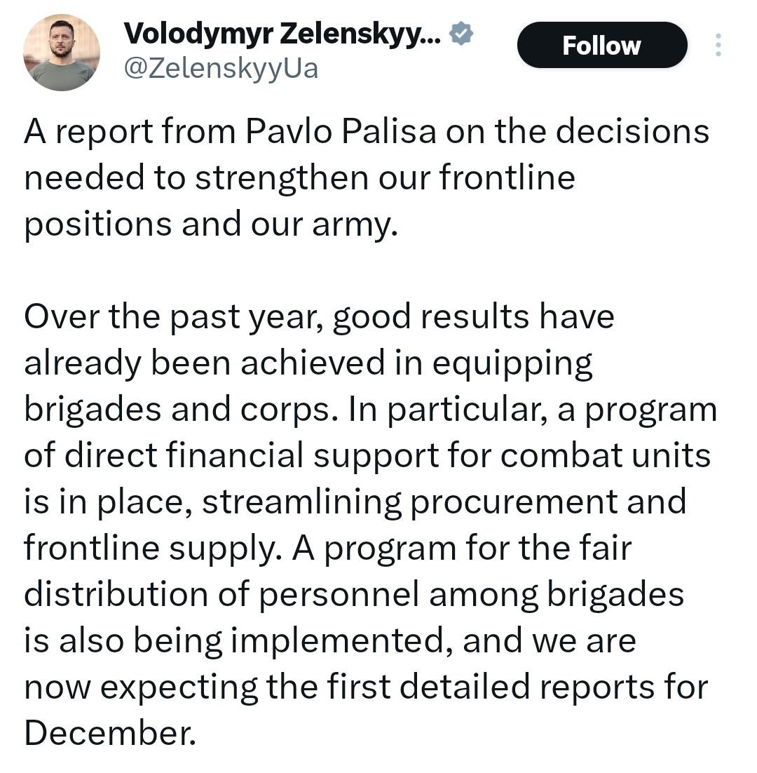 'Program for fair distribution of personnel among brigades is being implemented' Hard to miss what this really means: attempting to tackle CRIPPLING manpower shortage
