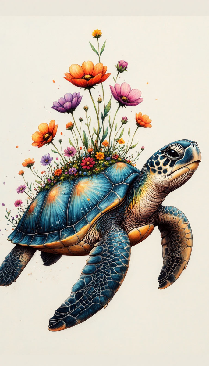 Она больше не была просто черепахой с идеальным панцирем. Она стала Черепахой-Садом, единственной и удивительной. И когда она наконец решилась заплыть за риф, она обнаружила, что океан не стремится расколоть её. Он просто был большим. А её цветы развевались в течении, как знамёна, напоминая всем, что самая большая сила — не в том, чтобы избежать повреждений, а в том, чтобы позволить жизни прорасти сквозь твои трещины, превращая шрамы в самое ценное украшение.